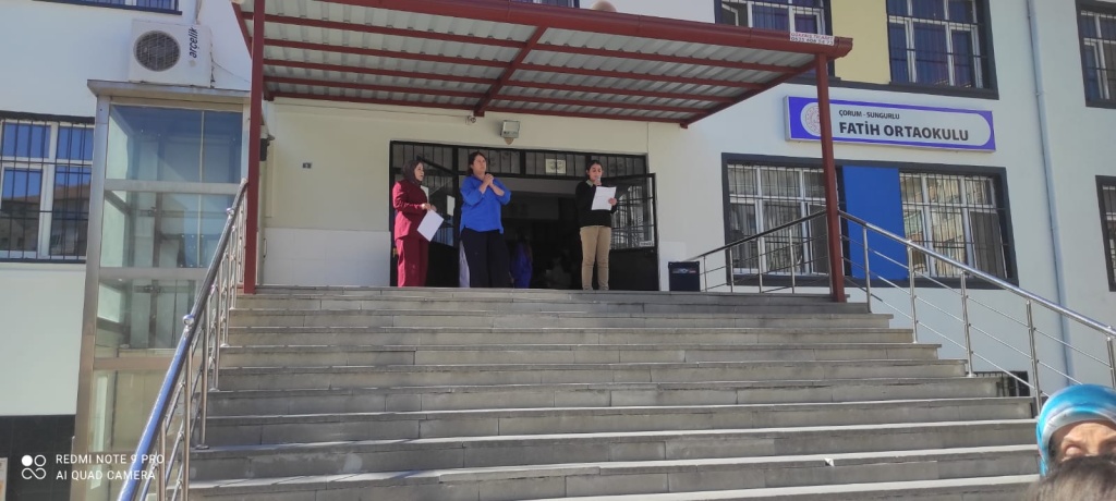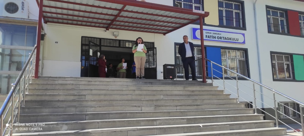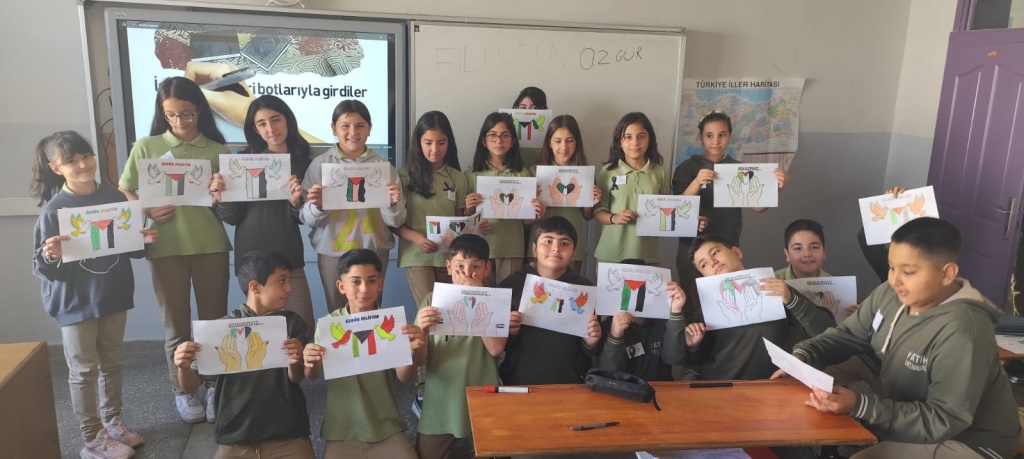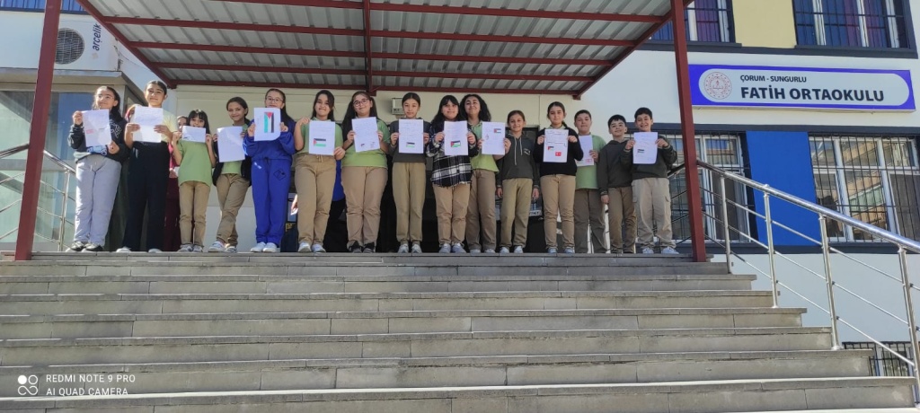 Tüm okullarda öğrencilerin katılımıyla eşzamanlı olarak Filistin ve Gazze temalı farkındalık etkinlikleri düzenlendi. Fatih Ortaokulu olarak Filistin'e yapılan zulüm ve hakkızlığa karşı sesimizi yükselttik. Öğrenci ve öğretmenlerin katılımıyla Filistin ve Gazze'de yaşanan acılara duyarsız kalmadan, insanlık onurunu savunma bilincini çocuklarımıza aşıladık.